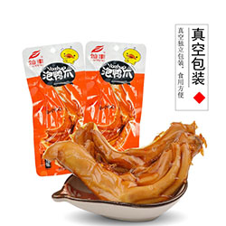 全自動旋轉(zhuǎn)給袋式真空包裝機適用于鴨舌、雞蛋干、雞關(guān)節(jié)、雞腿、雞脖、鳳爪、鴨胗、鴨爪、鴨腿、翅根、翅尖、翅中、兩節(jié)翅等各種不規(guī)則物料真空袋包裝。